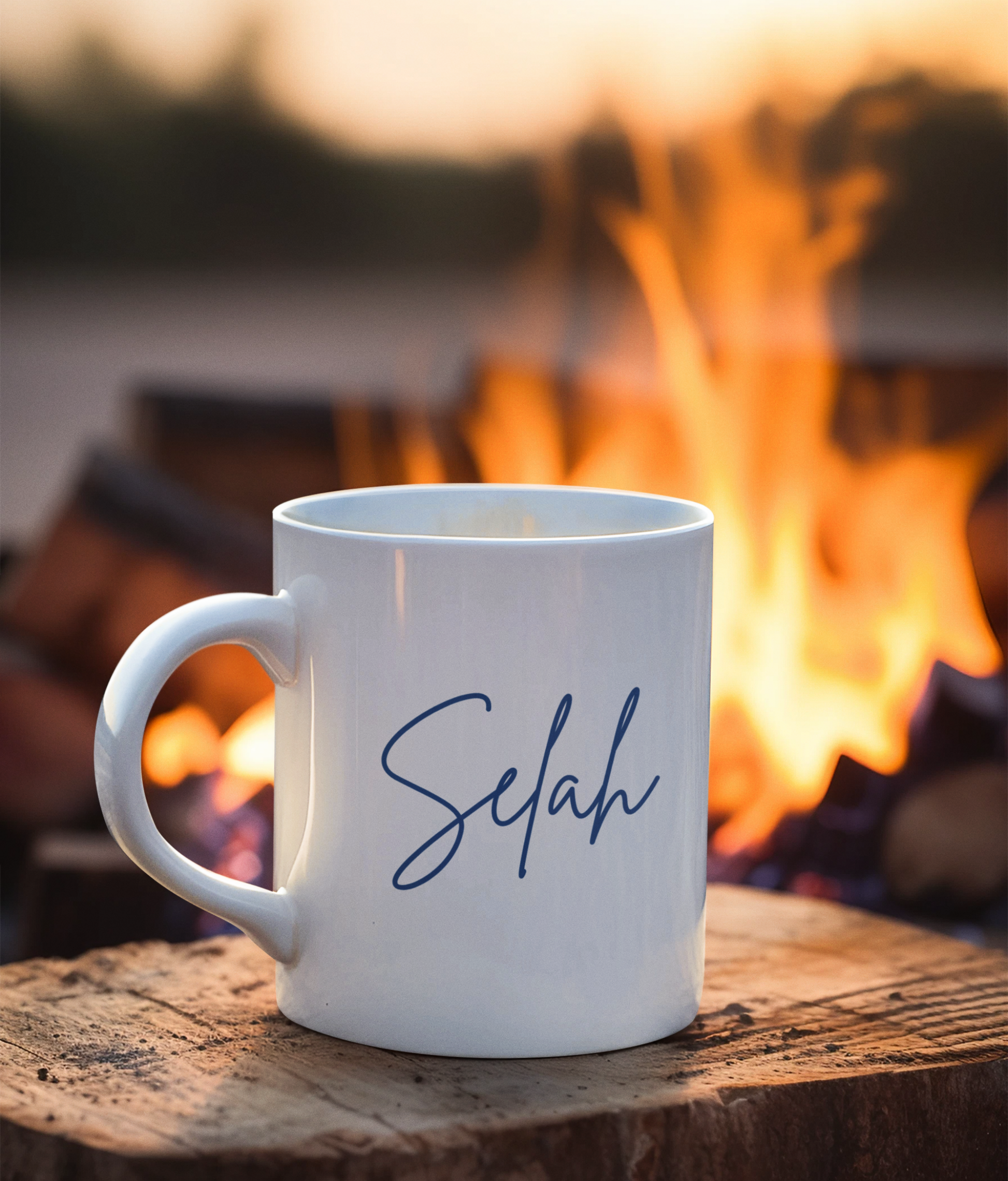 Pause. Reflect. Breathe. This ceramic mug features the word Selah — a powerful Hebrew expression found throughout the Psalms, inviting you to stop and consider what truly matters. Whether you’re sipping your morning brew, journaling during quiet time, or winding down after a long day, let this mug serve as a reminder to slow your pace and realign with purpose.