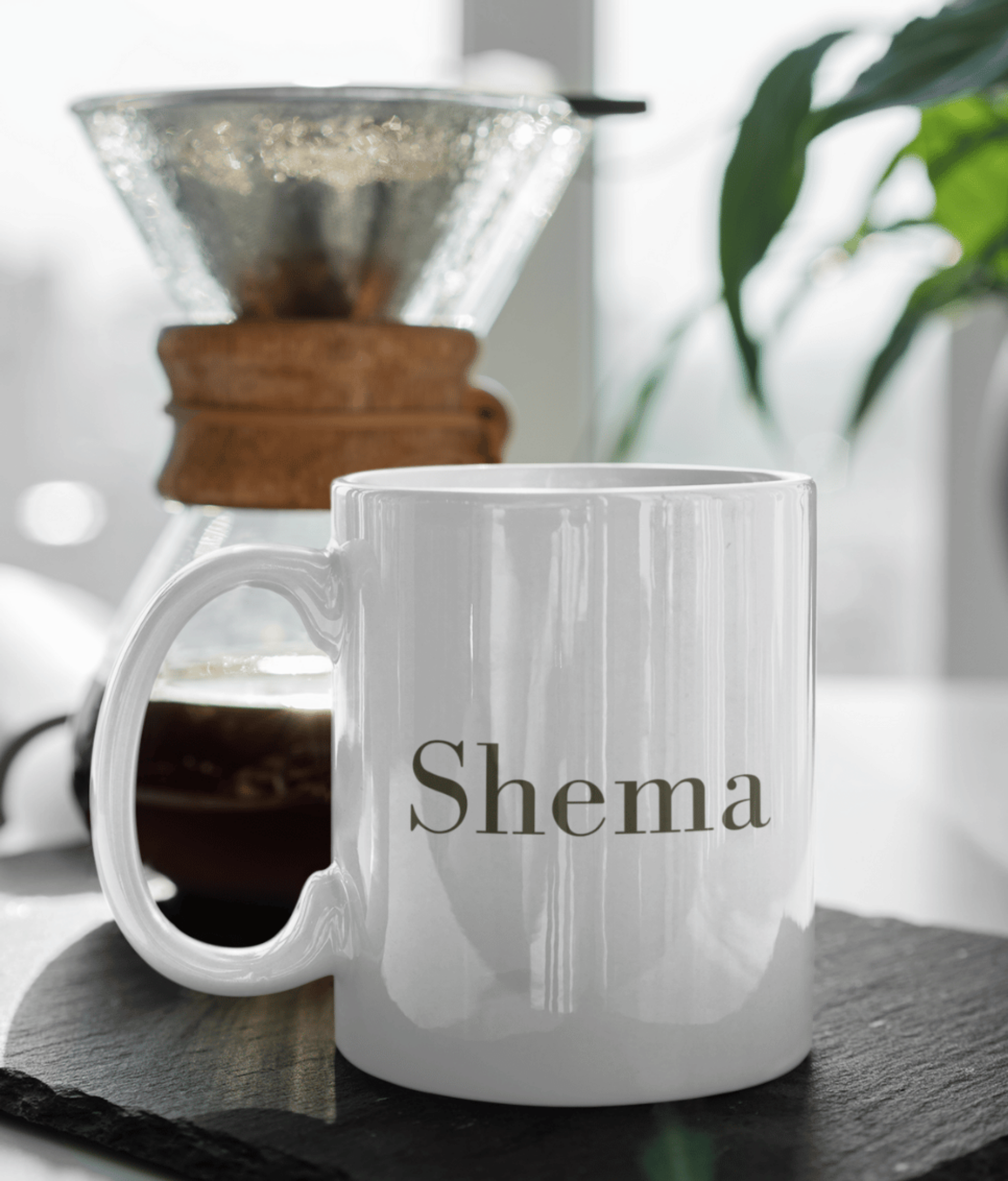 - 1x (qty ordered) 11oz ceramic mug with Shema design